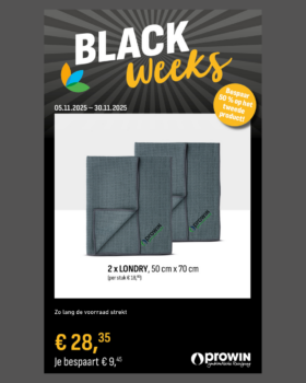 Geen Black friday bij proWIN, maar BLACK Weeks. Iedere woensdag in november 2 acties, waarbij je op het 2e product maar liefst 50% korting ontvangt.